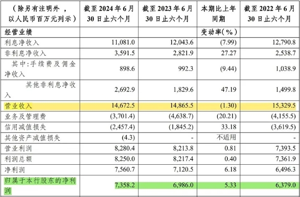 此前,渝农商行已连续两年增利不增收。2022年至2023年,渝农商行归母净利润同比增幅分别为7.49%、6.1%;营业收入同比降幅分别为6%、3.57%。