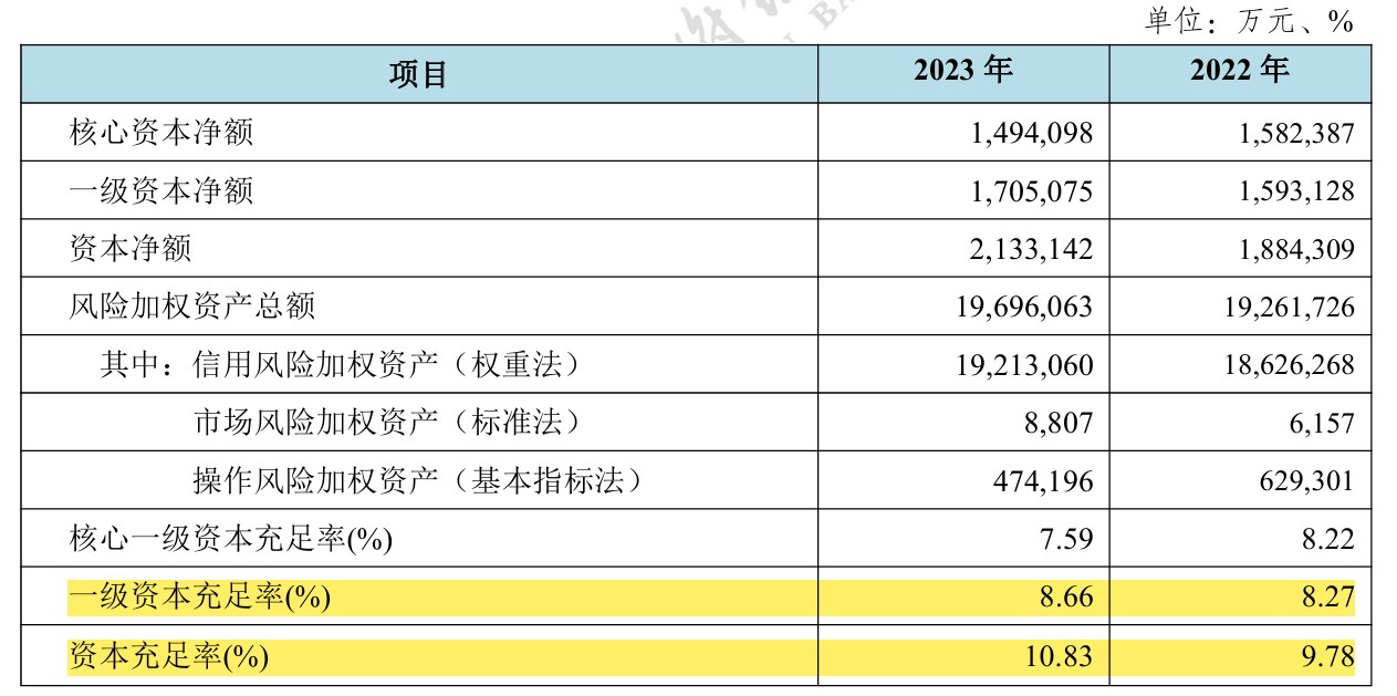 最新披露的三季报显示:截至2024年9月末,天府银行资本充足率下滑至10.72%;一级资本充足率上升至9.06%;核心一级资本充足率提高至7.99%,但仍较为接近监管下限。