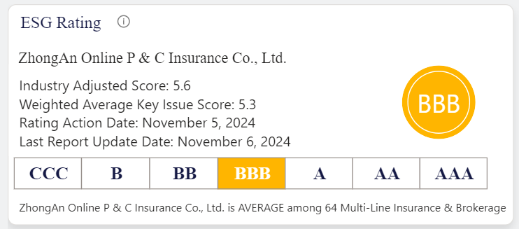 近日,国际权威评级机构摩根士丹利资本国际公司(中文简称“明晟”,英文简称“MSCI”)公开发布最新年度环境、社会及治理(简称“ESG”)评级结果。众安在线财产保险股份有限公司(以下简称“众安在线”)的MSCI ESG评级上调至“BBB”等级,实现从2022年至2024年连续三年的稳步提升。