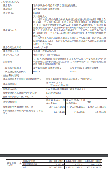 平安双季鑫6个月持有期债券成立 规模14.6亿