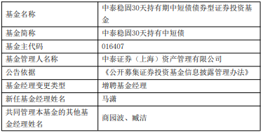 中国经济网北京9月20日讯 今日,中泰证券(上海)资产管理有限公司公告,中泰稳固30天持有中短债增聘基金经理马潇。
