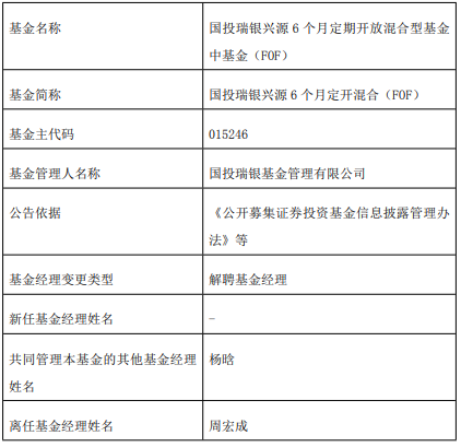 周宏成离任国投瑞银兴源6个月定开混合FOF