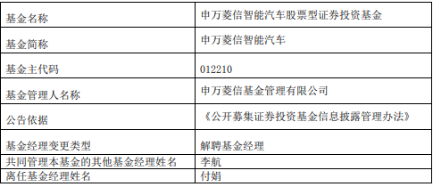 付娟离任申万菱信智能汽车 成立3年多亏35%
