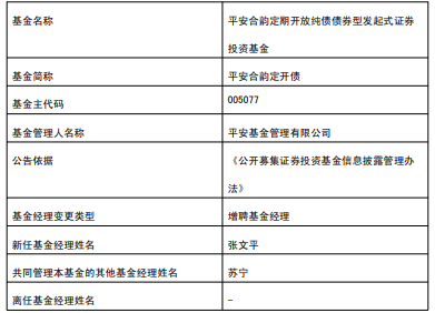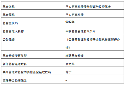 平安合韵定开债平安惠享纯债增聘基金经理张文平