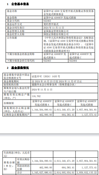 富国中证A500ETF发起式联接基金成立 规模39.6亿元