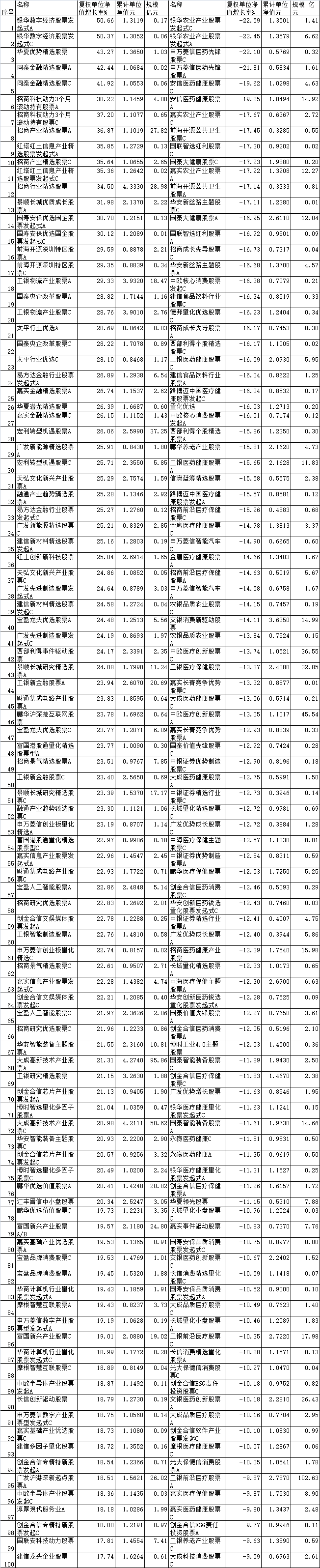 在跌幅榜上,共有33只普通股基跌幅超过15%,从行业来看,农林牧渔与医药主题跌幅明显。