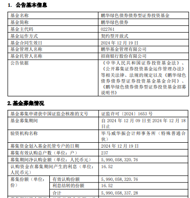 募集期间净认购金额5,990,058,320.76元,认购资金在募集期间产生的利息16.52元,募集份额合计5,990,058,337.28份。