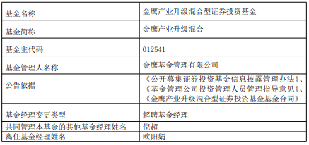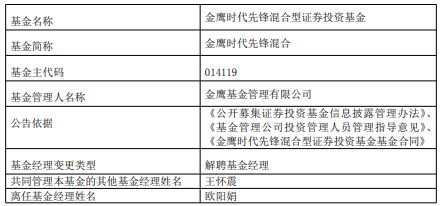 欧阳娟离任金鹰产业升级混合金鹰时代先锋混合