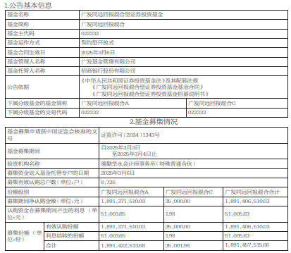 中国经济网北京3月7日讯 今日,广发基金管理有限公司发布广发同远回报混合型证券投资基金基金合同生效公告。