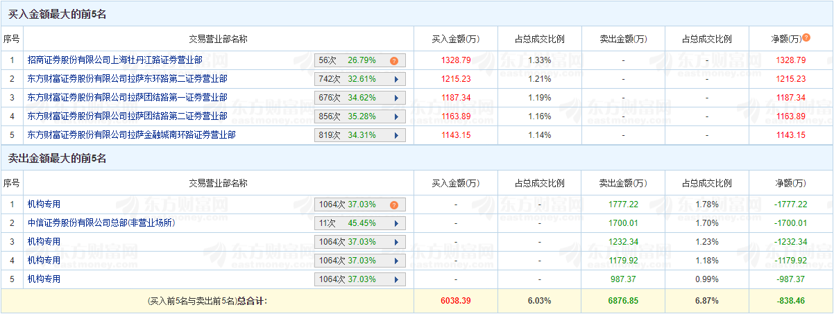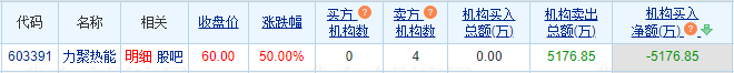 力聚热能龙虎榜:4家机构进卖出前5 净卖出共5177万元