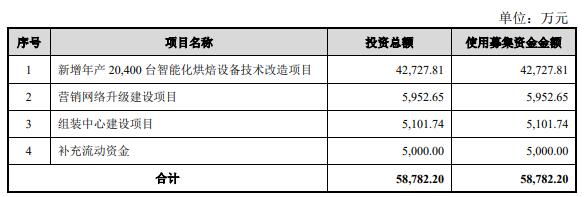 新麦机械原拟募集资金58,782.20万元,用于新增年产20,400台智能化烘焙设备技术改造项目、营销网络升级建设项目、组装中心建设项目、补充流动资金。