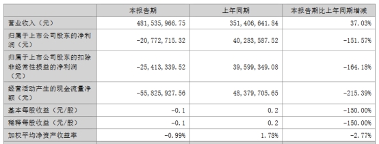 中国经济网北京8月7日讯 风光股份(301100.SZ)昨日晚间披露2024年半年度报告。2024年上半年,公司实现营业收入4.82亿元,同比增长37.03%;归母净利润-2077.27万元,上年同期盈利4028.36万元;扣非净利润-2541.33万元,上年同期盈利3959.93万元;经营活动产生的现金流量净额为-5582.59万元,上年同期为4837.97万元。
