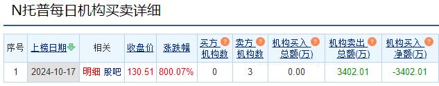托普云农上市首日涨8倍 龙虎榜:3家机构共卖3402万元