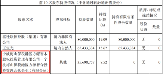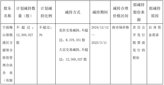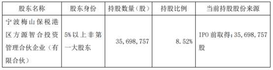 截至公告披露日,方源智合共持有公司35,698,757股,其持有股份占公司总股本的8.52%。上述股份为公司首次公开发行前取得的股份,并已于2024年3月25日起上市流通。