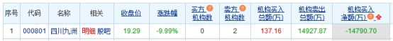 龙虎榜数据显示,卖出四川九洲金额最大的前5名中,2家为机构专用席位。经统计,机构席位今日卖出四川九洲净额为14790.70万元。