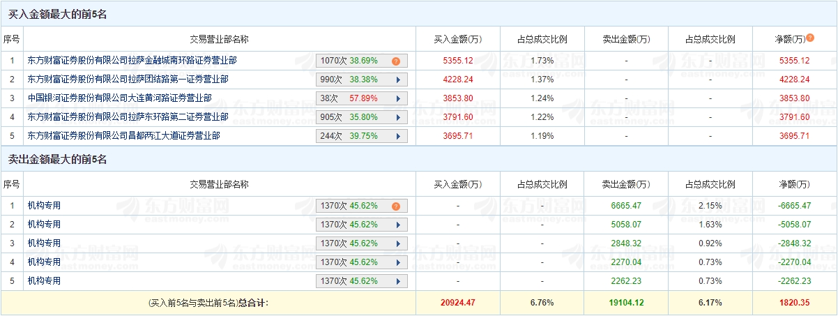 红四方龙虎榜:机构包揽卖出前5 净卖出共1.91亿元