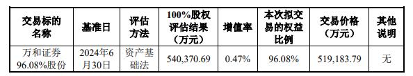 本次交易标的公司100%股权对应的评估价值为540,370.69万元,本次交易收购标的公司96.08%股份,对应交易作价为519,183.79万元。