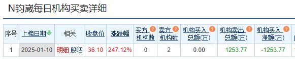 钧崴电子龙虎榜:2家机构进卖出前5 净卖出共1254万元