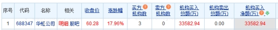 龙虎榜数据显示,买入华虹公司金额最大的前5名中,3家为机构专用席位。经统计,机构席位今日买入华虹公司净额为33582.94万元。