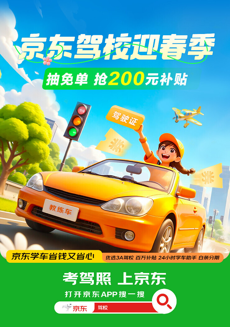 气候宜人的春季成为大学生眼中的学车黄金期。为满足广大学子驾考需求,京东汽车近日推出了“2025迎春学车季”专属活动,大学生最低可享8折优惠,并有机会获得免单等超值福利。打开京东APP搜索“驾校”或“学车”即可直达报名页面。