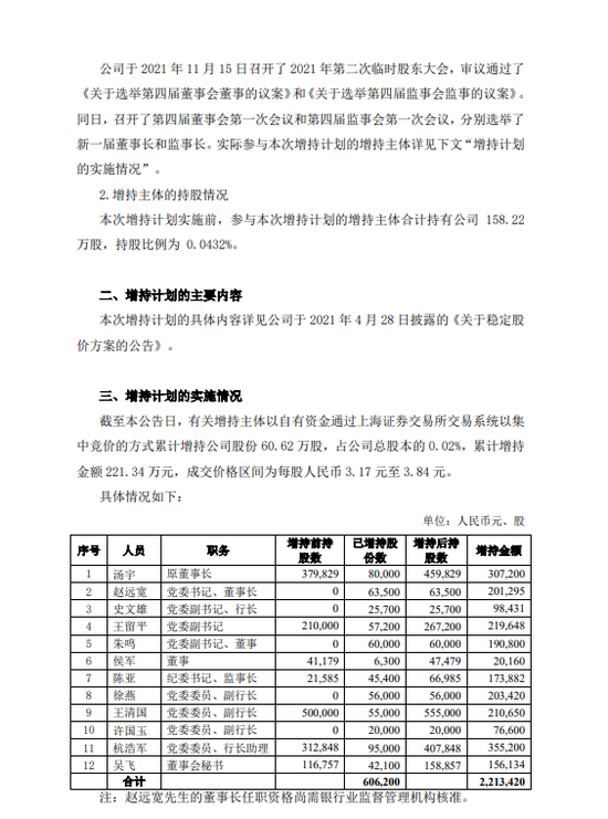 11月23日消息,紫金银行发布公告,在本次增持实施期限内,有关增持主体以自有资金通过上海证券交易所交易系统以集中竞价的方式累计增持公司股份60.62万股,占公司总股本的0.02%,累计增持金额221.34万元,成交价格区间为每股人民币3.17元至3.84元。