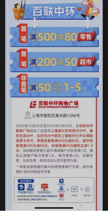 年末岁初“买买买”,在上海的新世界、中环百联、陆家嘴中心等多家热门地标商圈以及麦德龙、奥乐齐等会员商超,上海银行满减优惠到处可见。