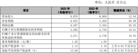 常熟银行2023年营收增12.04% 净利润增19.61%