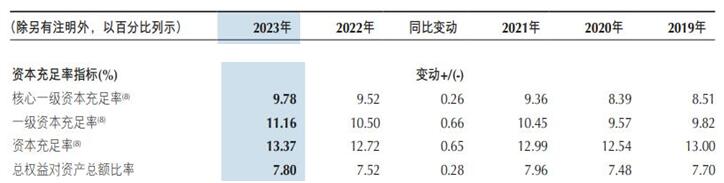 截至2023年12月31日,重庆银行资本充足率为13.37%,较上年末上升了0.65个百分点;一级资本充足率为11.16%,较上年末上升了0.66个百分点;核心一级资本充足率为9.78%,较上年末上升了0.26个百分点。