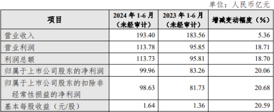 中国经济网北京7月26日讯 杭州银行(600926.SH)昨日晚间发布2024年半年度业绩快报公告。2024年1-6月,杭州银行实现营业收入193.40亿元,同比增长5.36%;实现归属于上市公司股东的净利润99.96亿元,同比增长20.06%;实现归属于上市公司股东的扣除非经常性损益的净利润98.63亿元,同比增长20.68%。