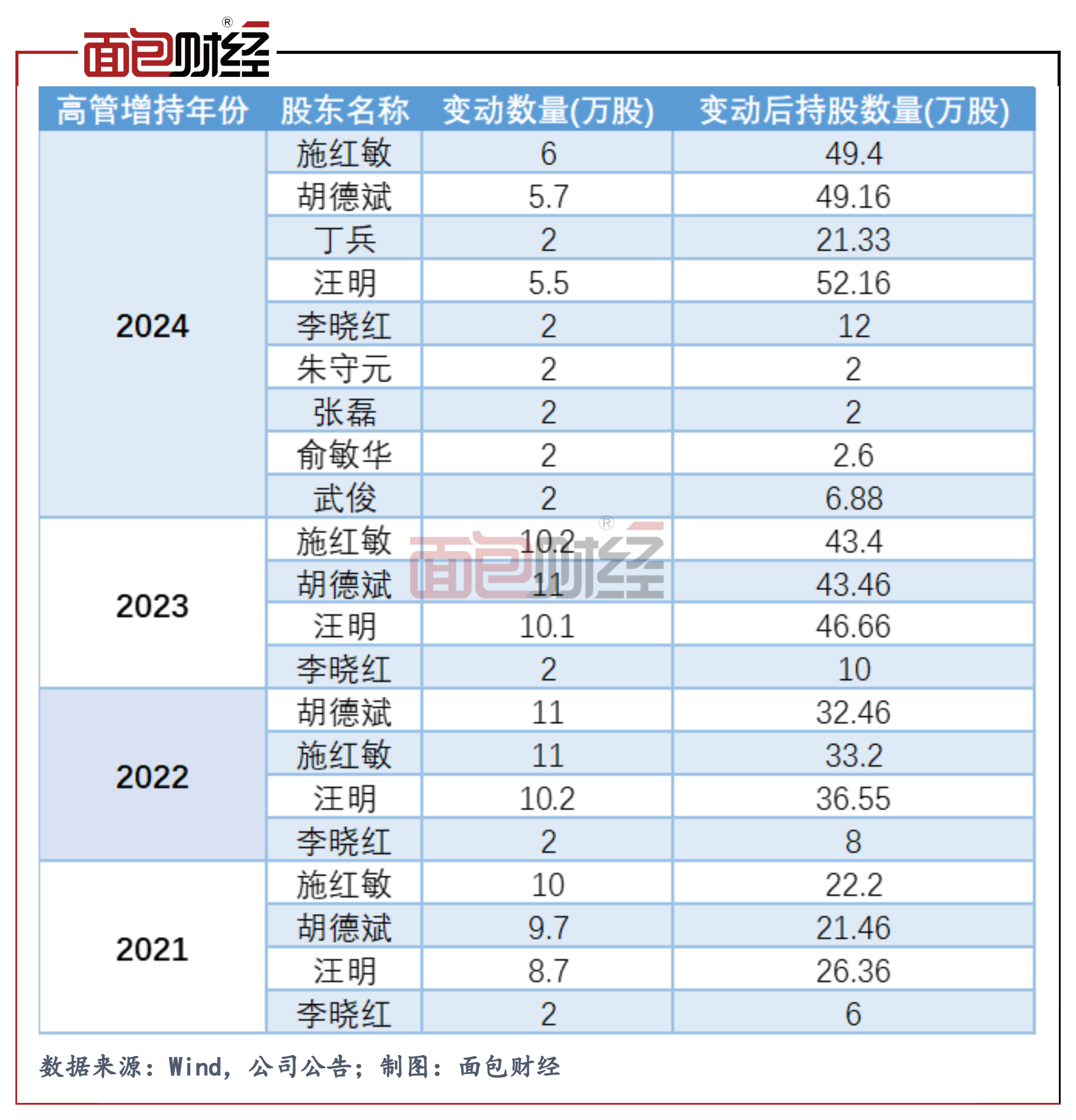 历史数据显示,自2019年至2024年,每年都有包括行长、副行长在内的多位高管增持上海银行的股票,部分高管的增持金额甚至达到当年薪酬金额的七成。下图为当前在任高管的股票增持情况。