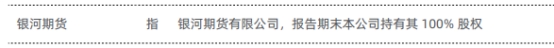 中国银河(601881.SH)年报显示,中国银河对银河期货有限公司持股比例为100%。
