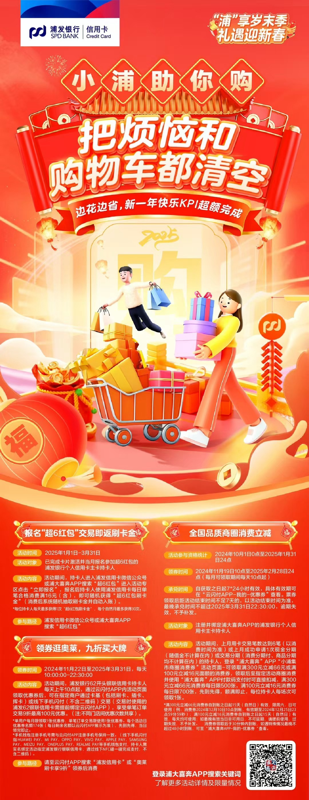 信用卡在扩内需、惠民生上扮演着举足轻重的角色,提振消费服务实体经济,助力持卡人追求品质美好生活。浦发信用卡携手银联推出奥特莱斯优惠活动,充分发挥卡组织支付网络的交易便捷性,提升消费金融服务质感。同时,不断焕新消费场景贴近消费者所需,兼顾品质与实惠,从体验出发持续为品牌赋能,积极开拓金融支付与生活消费场景深度融合的路径,带来更多层次的优质购物体验,进一步激发消费活力,构建消费金融共赢生态。