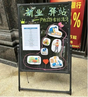 在黄浦区一家“心家园”公益服务站,同时也是黄浦区新业驿站内,摆放着向物流快递员、外卖配送员、网约车司机、户外工作者等新业态、新就业群体提供的茶水饮料、应急药箱、雨伞雨衣等以备不时之需。该站点已经成为了户外工作者夏季避暑、冬季避寒的休息港湾。