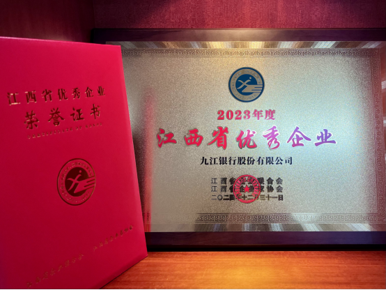 1月21日,江西省企业联合会·江西省企业家协会第八届二次会员代表大会暨2024年年会在南昌召开。九江银行凭借在高质量金融推动高质量发展等方面的突出贡献,获评“2023年度江西省优秀企业”,九江银行党委副书记、行长肖璟获评“2023年度江西省优秀企业家”。