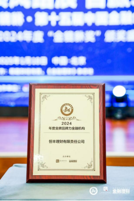 1月18日,金貔貅·第十五届中国金融创新与发展论坛暨2024年度“金貔貅奖”颁奖盛典在京举行。凭借优秀的市场表现及出色的运营管理,恒丰理财公司荣获“年度金牌品牌力金融机构”奖,旗下恒惠新丰利系列理财产品荣获“年度金牌市场影响力金融产品”奖。