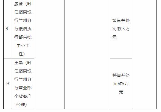招商银行兰州分行及某支行共被罚240万 1人被禁业10年