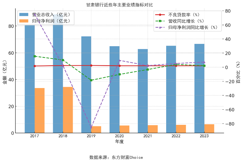 甘肃银行于2018年上市前后经历了业绩的高峰与骤降。2018年可被视为业绩高点,当年营收接近89亿元,净利润达34.35亿元。