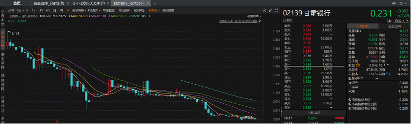 但总体来看,甘肃银行上市后的股价长期低迷。截至2月28日,该股收报约0.23港元,较发行价跌去逾91%,总市值由高峰时的近300亿港元缩水至不足40亿港元,蒸发了近270亿港元。目前,甘肃银行股价已处于“仙股”水平(低于1港元),反映出投资者信心的严重不足。