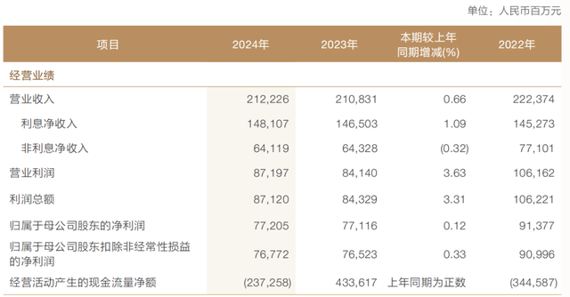 3月27日,兴业银行披露的2024年度报告显示,2024年,兴业银行实现营业收入2122.26亿元,同比增长0.66%;实现归母净利润772.05亿元,同比增长0.12%。截至2024年末,兴业银行净息差1.82%,较上年末下降0.11个百分点。