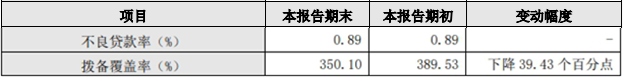 2024年末,江苏银行的不良贷款率为0.89%,与上年末持平;拨备覆盖率为350.10%,较上年末下降39.43个百分点。