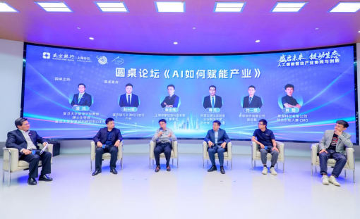 圆桌论坛环节,复旦大学管理学院教授、博士生导师、复旦大学智慧城市研究中心主任凌鸿;上海深擎信息科技有限公司董事长柴志伟;阿里云通义实验室企业解决方案总经理、资深专家傅杰;帆软软件有限公司副总裁付一然;黑湖科技有限公司联合创始人兼CMO肖哲与盛京银行上海分行代表一同围绕“AI如何赋能产业”等人工智能相关议题进行深入探讨,以期助力行业高质量发展,推动经济持续回升向好。