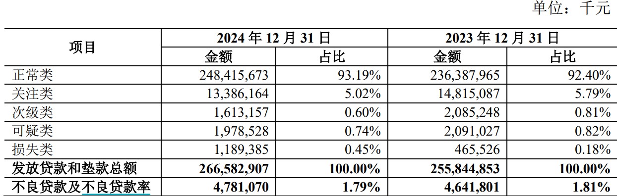 数据显示:截至2024年末,青农商行不良贷款率为1.79%,较上年末下降0.02个百分点;拨备覆盖率为250.53%,提高12.57个百分点;不良贷款余额则由46.42亿元增加至47.81亿元。