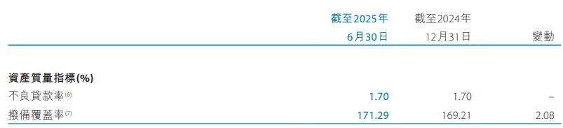 截至2025年6月末,天津银行不良贷款率1.70%,较上年末持平;拨备覆盖率171.29%,较上年末上升2.08个百分点。