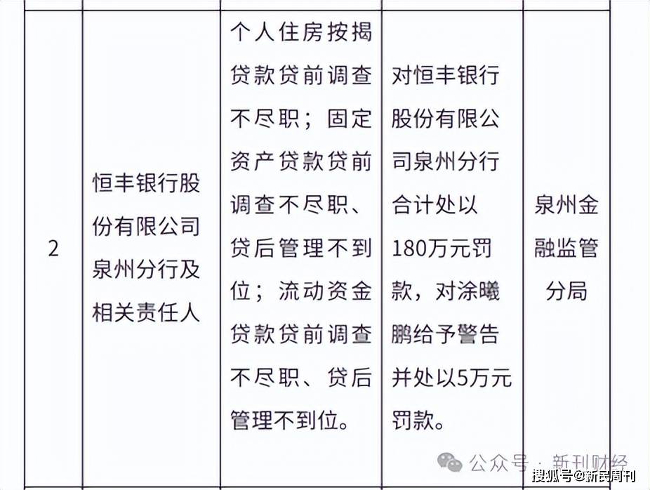 最突出的问题要数贷款“三查”机制缺位。2025年,恒丰银行多家分支机构被罚都是因为同类信贷违规:重庆分行因贷款“三查”不尽职、掩盖不良贷款被罚260万元;泉州分行因三类贷款业务全流程违规被罚180万元;昆明分行因流动资金贷款管理不审慎被罚205万元。然而,信贷管理链条这类违规,早在2024年就已集中爆发——恒丰银行因信贷管理不到位等相关原因被罚2000多万元,比2023年多了近1300万元。