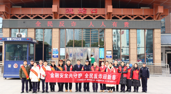 2026年春运大幕正式开启,鹰潭火车站迎来返乡客流高峰。为坚持以人民为中心的发展思想,切实守护群众 “钱袋子”、提升旅客反诈防范意识、筑牢金融消费者权益保护防线,春运首日,中国人民银行鹰潭市分行联合九江银行鹰潭分行、鹰潭铁路公安处鹰潭站派出所及铁路鹰潭车站,共同开展 “金融安全共守护 全民反诈迎新春” 主题宣传活动。通过定点宣传、流动科普、媒体播报的多维联动模式,为春运旅途筑起坚实的反诈防护屏障。