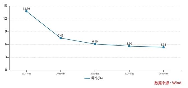 报告期内,重庆农商行实现营业收入286.48亿元,同比增长1.37%;归母净利润为121.28亿元,同比增长5.35%。拉长时间线看,该行归母净利润增速逐年放缓,2021年至2024年分别为13.79%、7.49%、6.10%、5.60%。