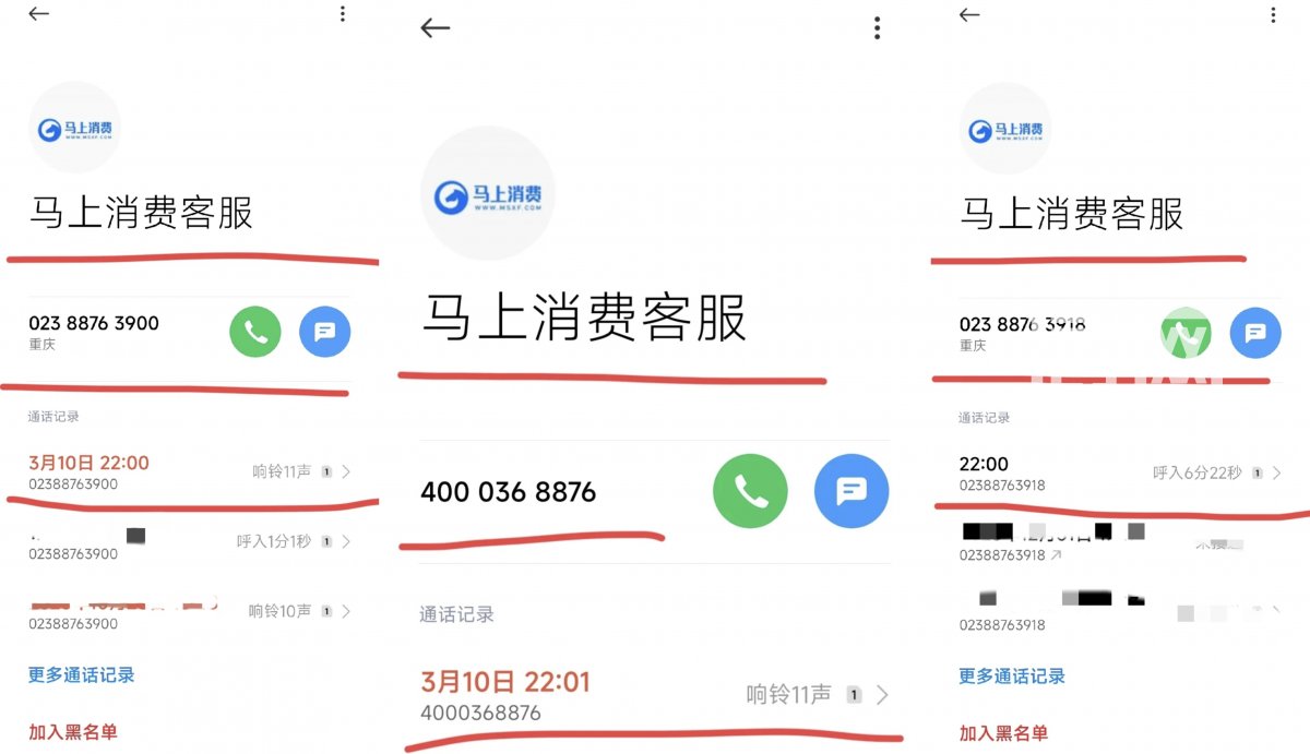 根据史先生提供的通话记录,信号新闻拨打了马上消费金融投诉监督专线。经专线工作人员确认,3月10日22时01分打进来的400电话确实是马上消费的官方客服热线。另外两个023开头的号码,工作人员表示“暂时查询不到”,但承认公司来电多以023或400开头。对于此举是否违规,工作人员表示将安排专人在核实后进行答复,但到发稿前,信号新闻没有收到任何回复。