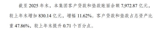 值得注意的是,2025年渝农商行的贷款占总资产比重虽较上年末有所提升,但仍旧没有过半,为47.86%。
