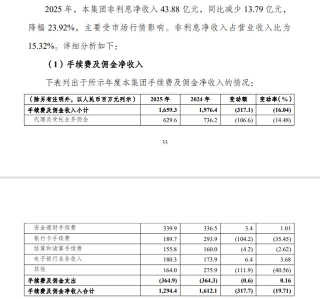 非息净收入降23.92%,手续费及佣金净收入降19.71%