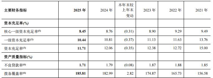 资产质量方面,该行不良贷款率虽微降至1.71%,但涉房贷款不良率高达9.75%,折射出区域房地产风险远未出清。拨备覆盖率185.81%,虽较年初提升2.82个百分点,但仍低于全国商业银行平均水平19.4个百分点,风险抵补能力偏弱。
